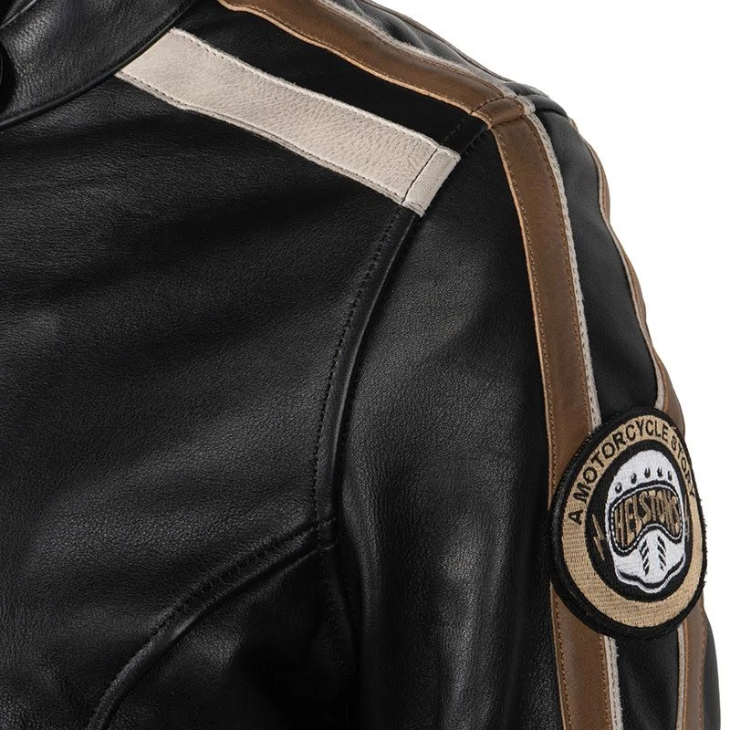 Je motorjas is een deel van je outfit dat goed in het oog springt. Hoe tof is het dan als dit een weerspiegeling is van je stijl en dat deze perfect matcht met je motor. Als je op zoek bent naar een Bruin, Zwart, Crème jas, dan is deze variant van de Jade een perfecte keuze! Ben je toch op zoek naar een andere kleur, neem dan een kijkje bij al onze andere kleurenopties voor de Jade!