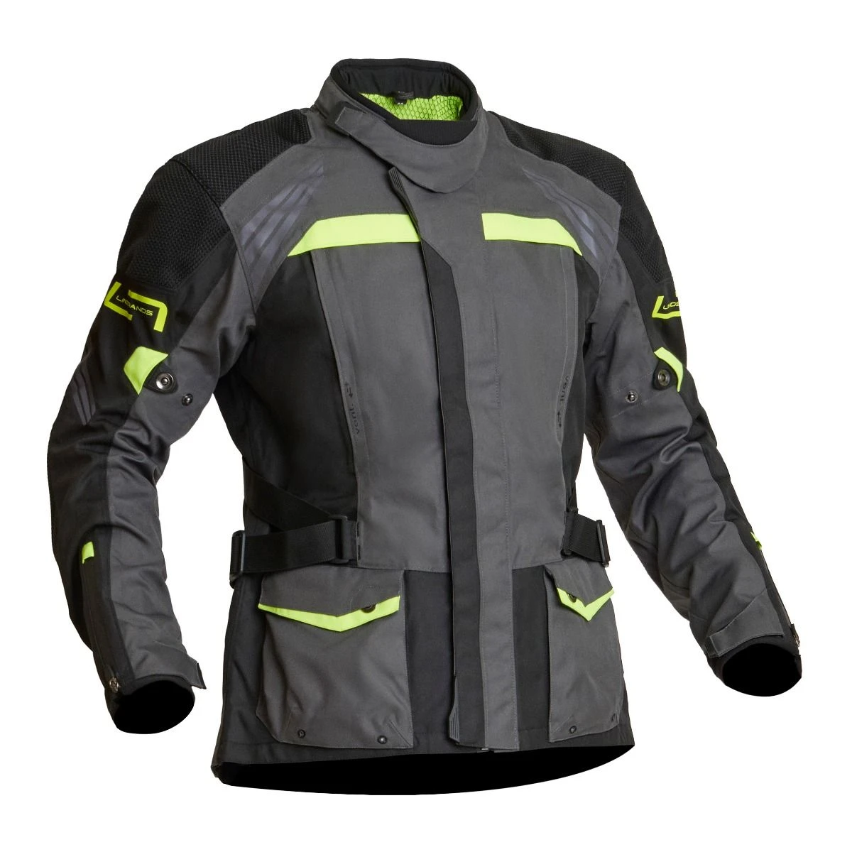 Functioneel 2-laags jack met gelamineerd ademend, wind- en waterdicht membraan 420D HI-TENACITY PE-WEAVE 2-laags jack met gelamineerd Dryway-membraan Dubbel buitenmateriaal op schouders en ellebogen CE-gecertificeerd volgens klasse AA Verstelbare, CE-gecertificeerde beschermers van niveau 1 Luchtopeningen aan de borst kan ook als zakken worden gebruikt. “Open rug” -concept voor betere ventilatie Kan worden aangevuld met een rugbeschermer Lange verbindingsrits aan broek