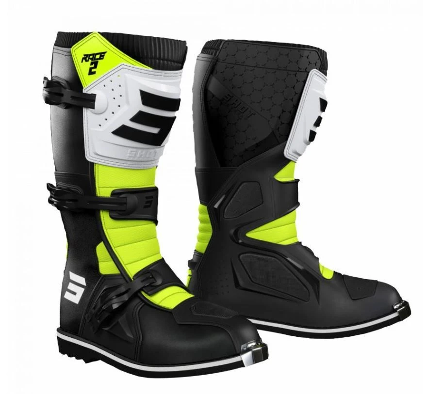 De SHOT Race 2 Kid Crosslaars is onderdeel van de ChromeBurner motorcrosscollectie. Motorcross- en endurorijders hebben hun eigen speciale wensenlijstje voor waar hun uitrusting aan moet voldoen. Of je nu professioneel crosst en grote sprongen maakt of slechts recreatief offroad rijdt, een ongelukje ligt nu eenmaal altijd op de loer en blessures komen veel voor. Een paar sterke offroadlaarzen maakt de kans op blessures kleiner door de impact te absorberen en te voorkomen dat je voet in ongewenste richtingen kan draaien. Mocht deze specifieke laars toch niet jouw ding zijn, bekijk dan al onze andere crosslaarzen van SHOT.