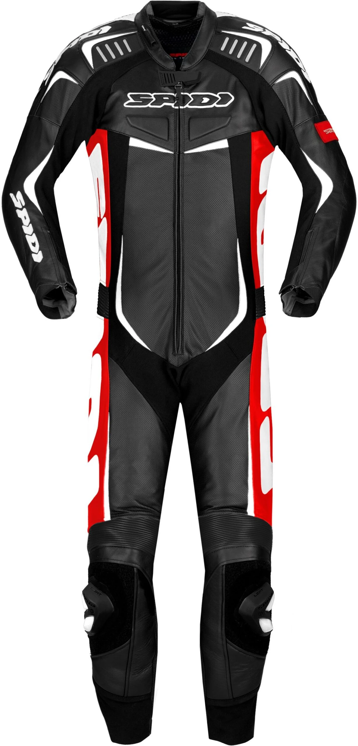Kan het voor jou niet snel genoeg gaan? De Track Wind Pro is een geweldig racepak van het merk Spidi voor echte snelheidsduivels. Eendelige racepakken zijn perfect voor het rijden op hoge snelheid, circuitdagen, races en voor de dagen waarop je alleen maar de beste lijnen en snelste tijden wilt rijden. Dit 1-delige pak voor Heren bestaat, zoals als de naam al aangeeft, uit één deel. Vergeleken met 2-delige racepakken zijn 1-delige pakken de meest veilige optie, want het bovenste gedeelte kan niet losraken van het onderste deel in het geval van een crash op hoge snelheid. Als je voor maximale protectie gaat, dan blijft er maar één optie over: hijs jezelf in dit Rood, Wit, Zwart Spidi eendelige motorpak!